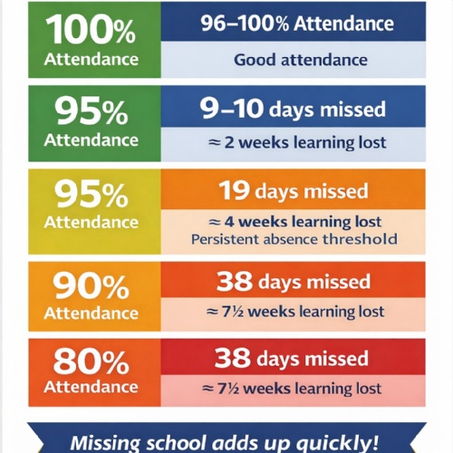 At Slater Primary School we want all our children to enjoy coming to school regularly. Our attendance target is to aim for 100%. There is clear research that links poor attendance with lower academic achievement.